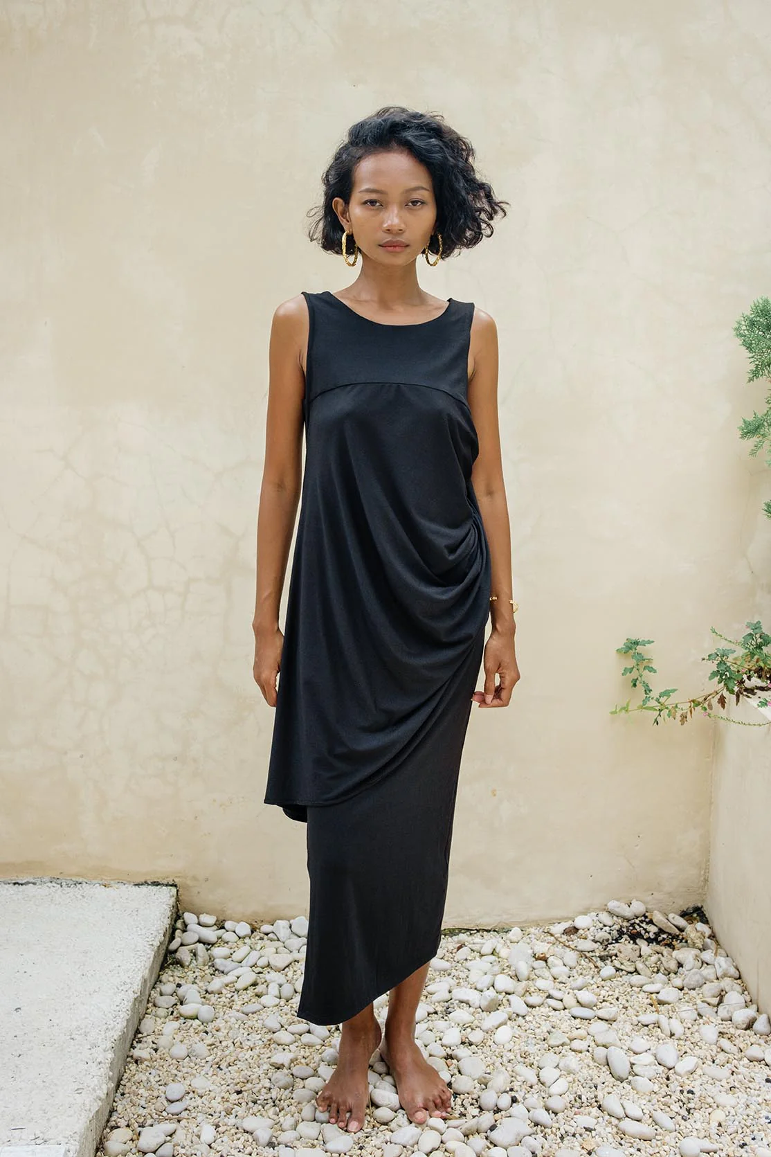 Effortlessly draped and modern, this versatile 2-piece set consists of a reversible draped top over tube dress that can be worn in multiple ways. See video for ideas :)